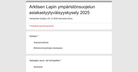 Arktisen Lapin ympäristönsuojelun asiakastyytyväisyyskysely