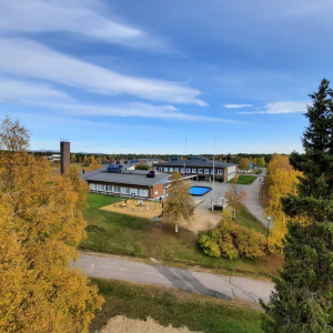Kuvateksti: Alakoulu- ja yläkoulurakennukset piha-alueineen kuvattu yläilmoista syyskuussa 2020.