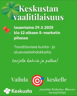 Tule jututtamaan Keskustan Muonion kuntaehdokkaita, jotka tarjoavat samalla nisukahvit Muonion S-Marketin pihalla. Keskustan aluevaaliehdokkaita tulee mukaan klo 14.30, tarjoten makkarat.