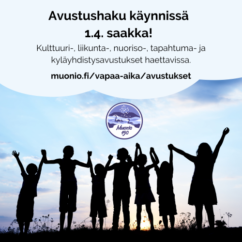 Muonion kunta myöntää vuosittain kulttuuri-, liikunta-, nuoristo-, tapahtuma- ja kyläyhdistysavustuksia talousarvioon varattujen määrärahojen puitteissa. Tällä sivulla löydät tietoa kulttuuri-, liikunta- ja nuoristoavustuksista. Tapahtuma- ja kyläyhdistysavustuksia voit hakea täältä. Kaikissa avustuksissa noudetaan yhtenäisiä hakuaikoja ja avustukset noudattavat yhtenäisiä avustusehtoja ja -periaatteita. Kaikki avustukset haetaan saman järjestelmän kautta yhtenäisellä hakulomakkeella.