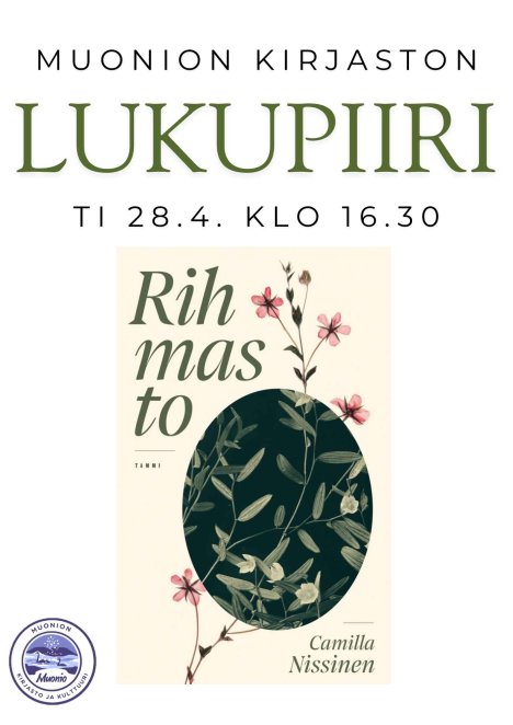 Muonion kirjasto järjestää tiistaina 28.4. klo 16.30 lukupiirin Camilla Nissisen romaanista Rihmasto.