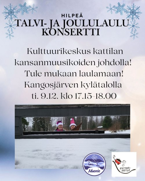 Vietetään ihana joululaulutuokio Kulttuurikeskus kattilan kansanmuusikoiden johdolla!